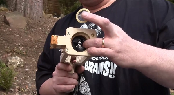 A opravdu je to vlastně pistole. Kondom vložíte do komory, zařízení nasunete na penis a za pomocí gumiček střílíte. Po odstranění zbraně zbyde dokonale aplikovaný kondom. Erekce už asi sotva.