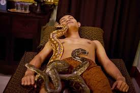 V Indonésii po vás nechají lozit hady – prý je to úžasná masáž